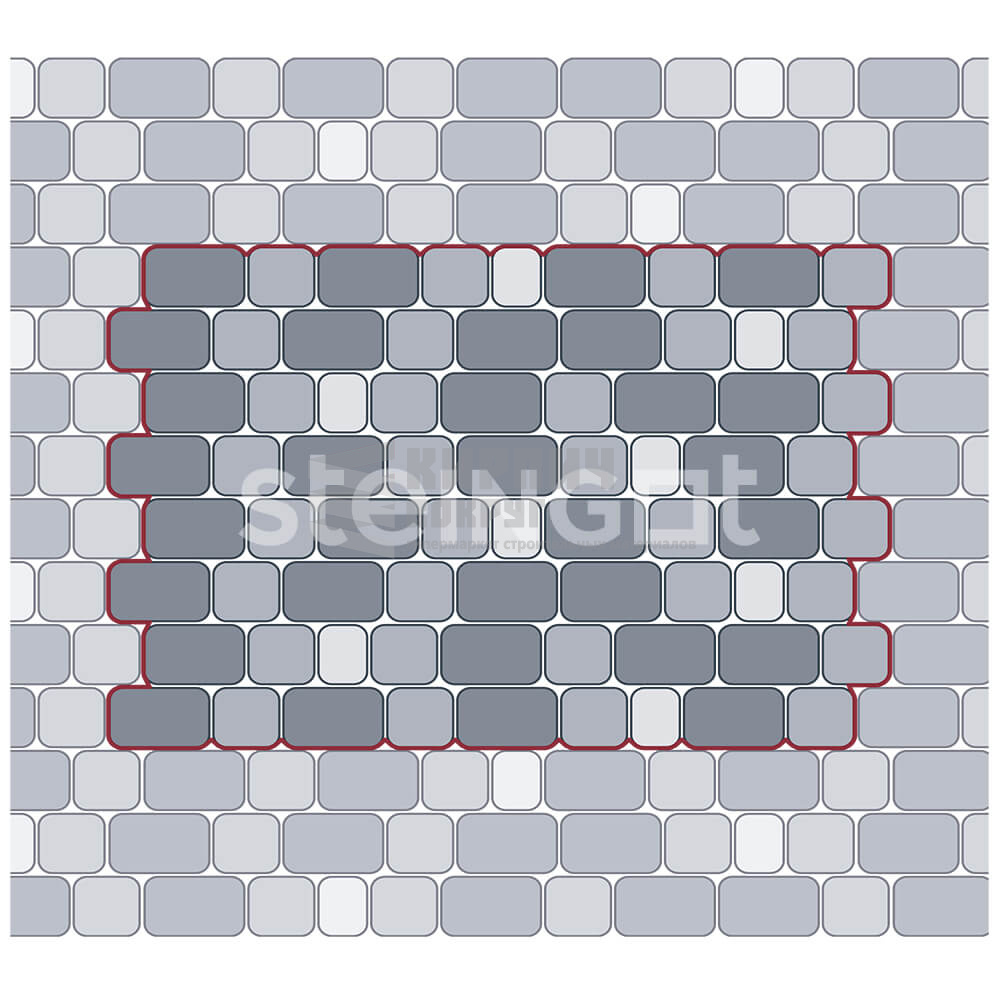 Форма известна с античных времен и по сию пору пользуется заслуженным вниманием ландшафтных дизайнеров. Классические пропорции камней в совокупности с лучшими технологиями 21 века воплотилась в современном эталоне мощения от мастеров Steingot.